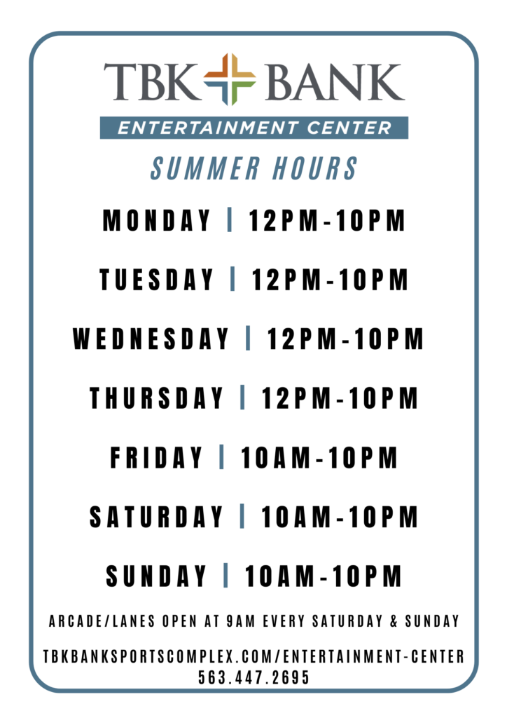Don’t miss out on these incredible offers and experiences at TBK Bank Entertainment Center this summer. Whether you’re looking for family-friendly fun or an exciting night out with friends, we’ve got something for everyone!