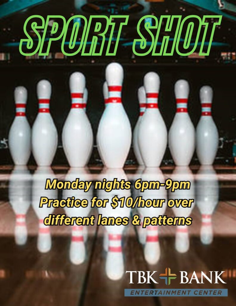 - Stop out to try your shot at challenging sport shot patterns. We offer a variety of different oil patterns each week to bowl on. Whether you’re preparing for a tournament or just trying to improve your game, this is a great opportunity!